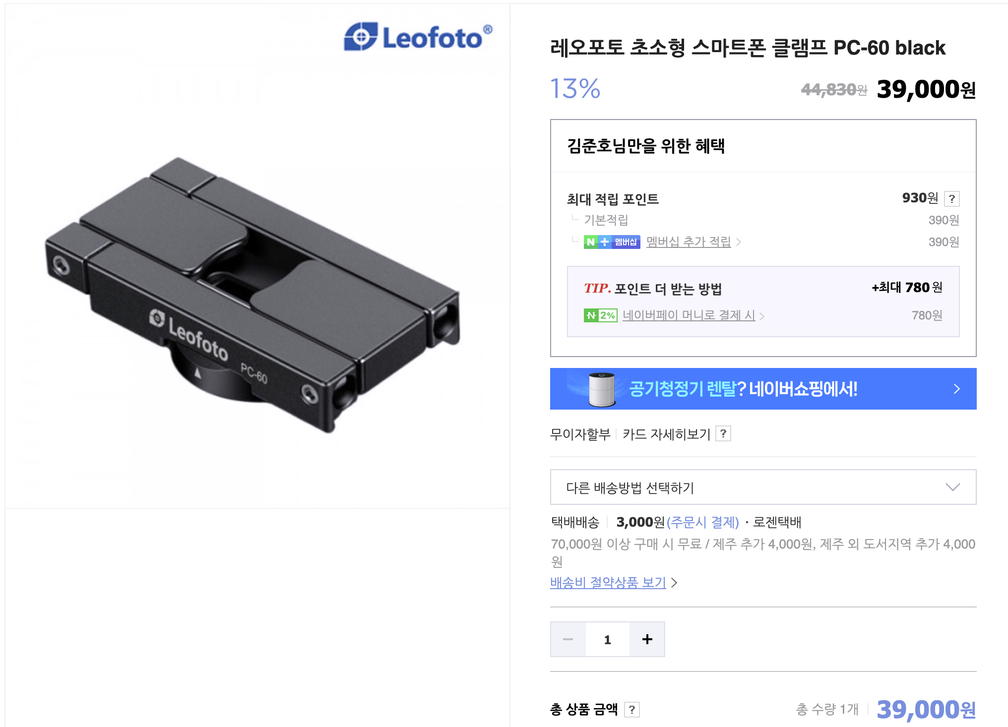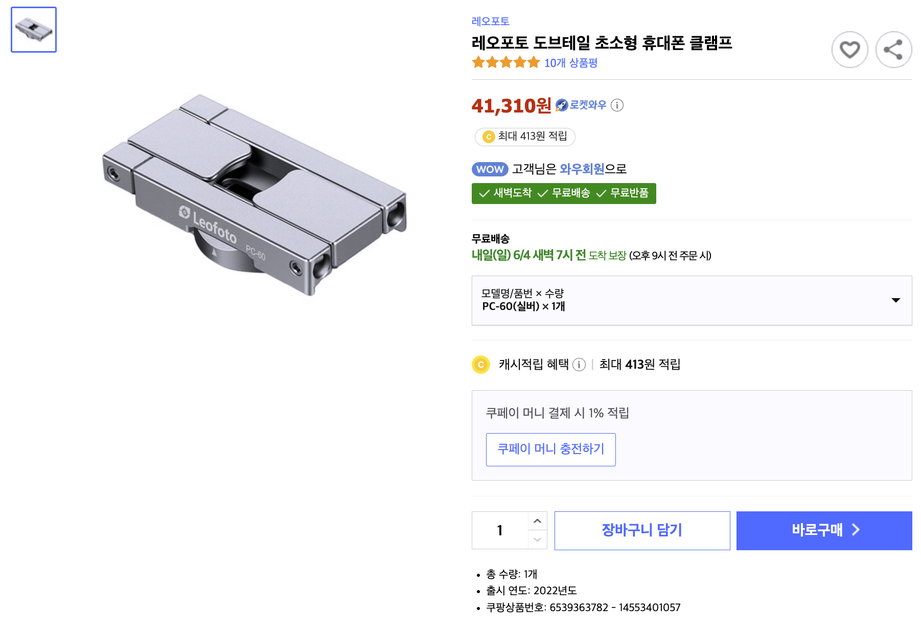 그러다 우연히 레오포토 휴대폰 클램프 PC-60이라는 제품을 보게 되었는데 이 제품이 벙커링의 상위호환 제품일 거 같다는 느낌이 들었습니다.