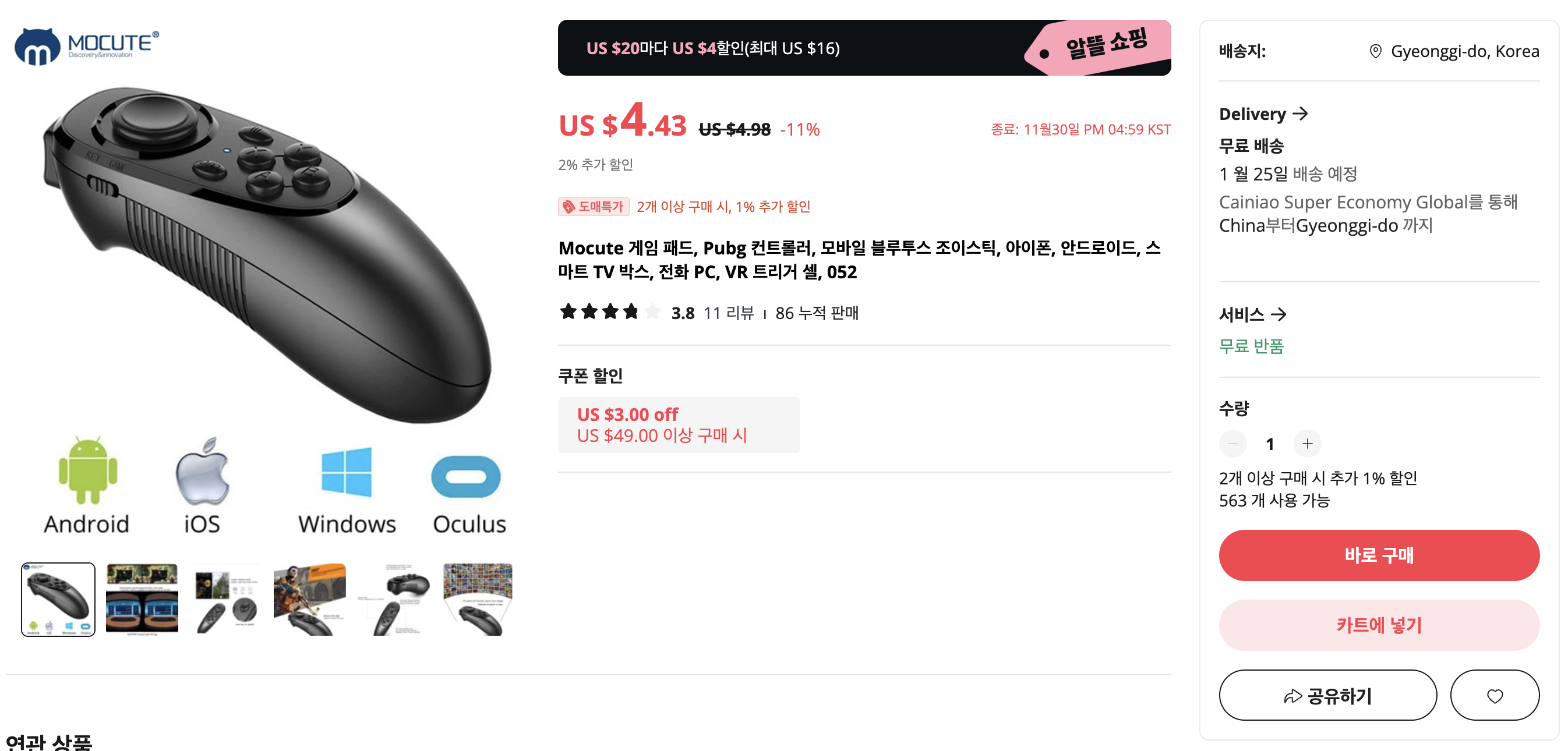최근 아이패드에서 교보이북으로 이북을 읽을 때 MOCUTE-032 리모컨을 이용해서 페이지를 넘기고 있습니다. 가볍고 조작이 간편하며 배터리도 오래가서 잘 활용하고 있습니다. 그런데 종종 어디 뒀는지 잘 못 찾을 때가 있어서 여분으로 구입해 두려고 합니다. 같은 회사 제품인 MOCUTE-052 제품도 어떤지 궁금해서 하나 구입해 보려고 합니다. 비슷하게 생긴 다른 회사 제품인 VR-PARK 제품은 아이패드 교보이북에서는 사용하기 불편했는데 MOCUTE-052는 어떨지 궁금하네요.