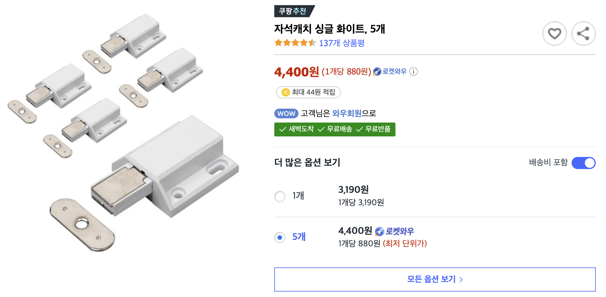 아이들 방에 붙박이장이 있습니다. 문을 닫을 때 문을 누르면 자석으로 착 붙고, 문을 다시 누르면 자석에서 떨어집니다. 그런데 세월이 흘러서 그런지 문이 안 닫히더군요. 자석캐치라는 부품이 고장 나서 그런 것 같습니다. 이 부품을 어디서 구해야 하나 걱정이 들었는데, 쿠팡에서 쉽게 검색이 되더군요. 주문해서 직접 교체해 보려고 합니다.