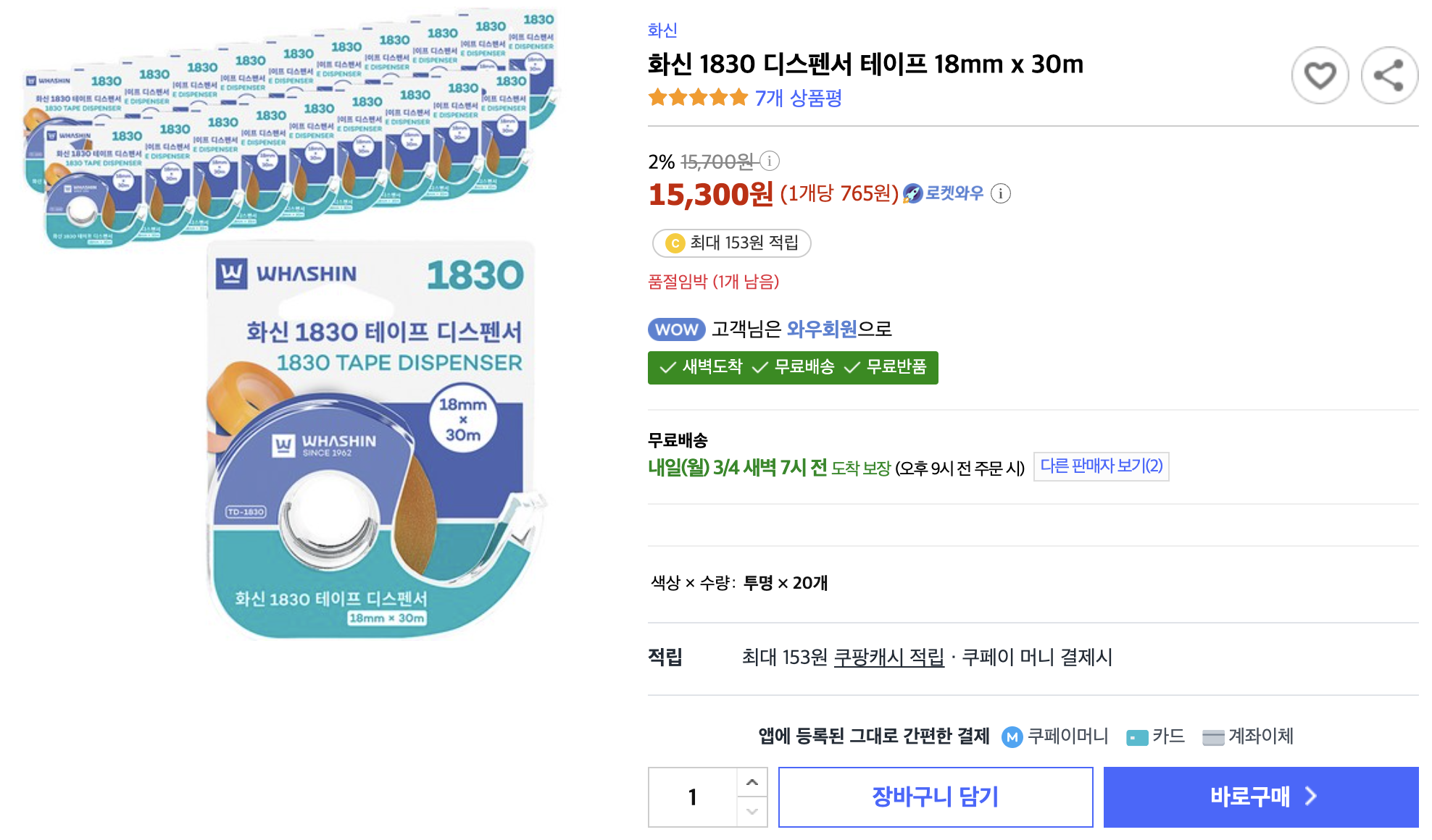 제품명: 화신 1830 디스펜서 테이프 18mm x 30m 20개