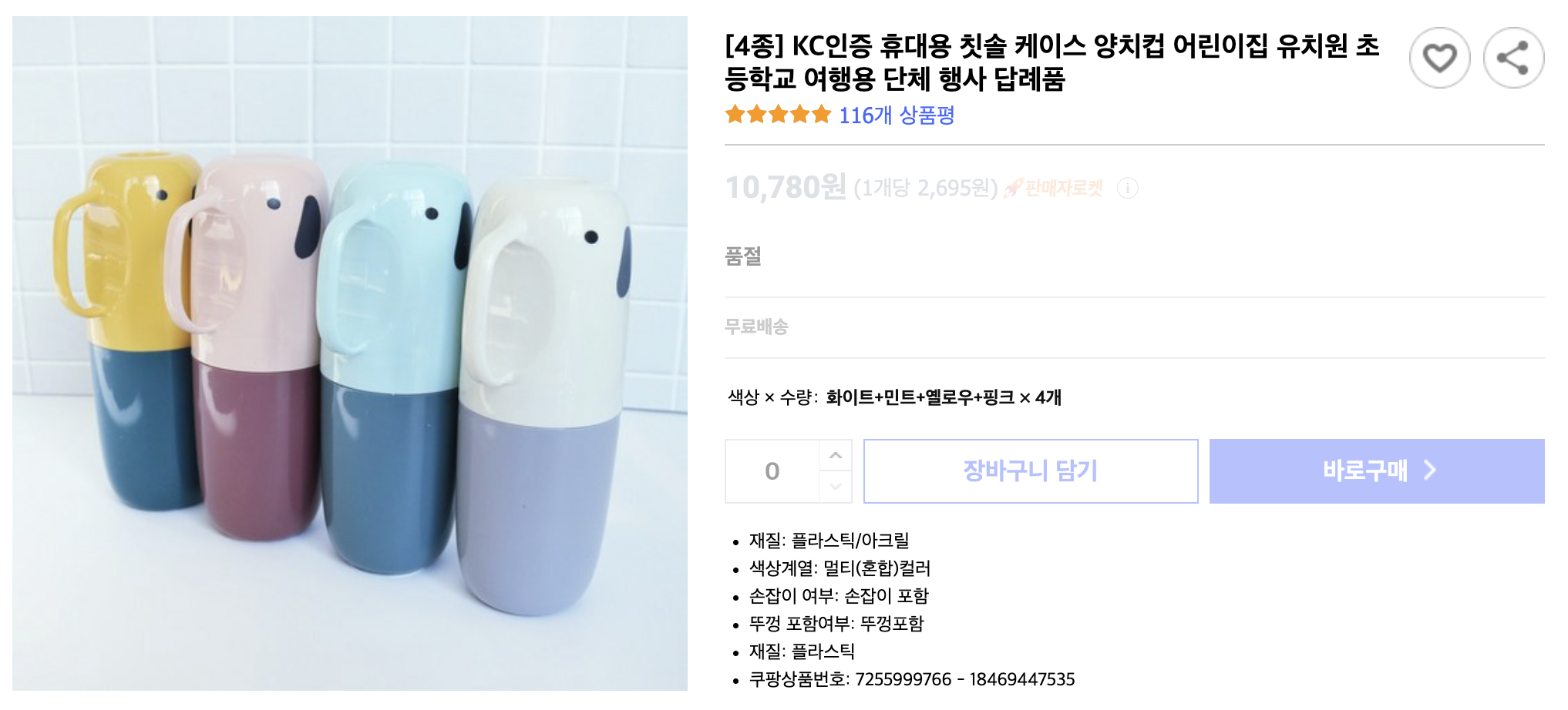 제품명: KC인증 휴대용 칫솔 케이스 양치컵
