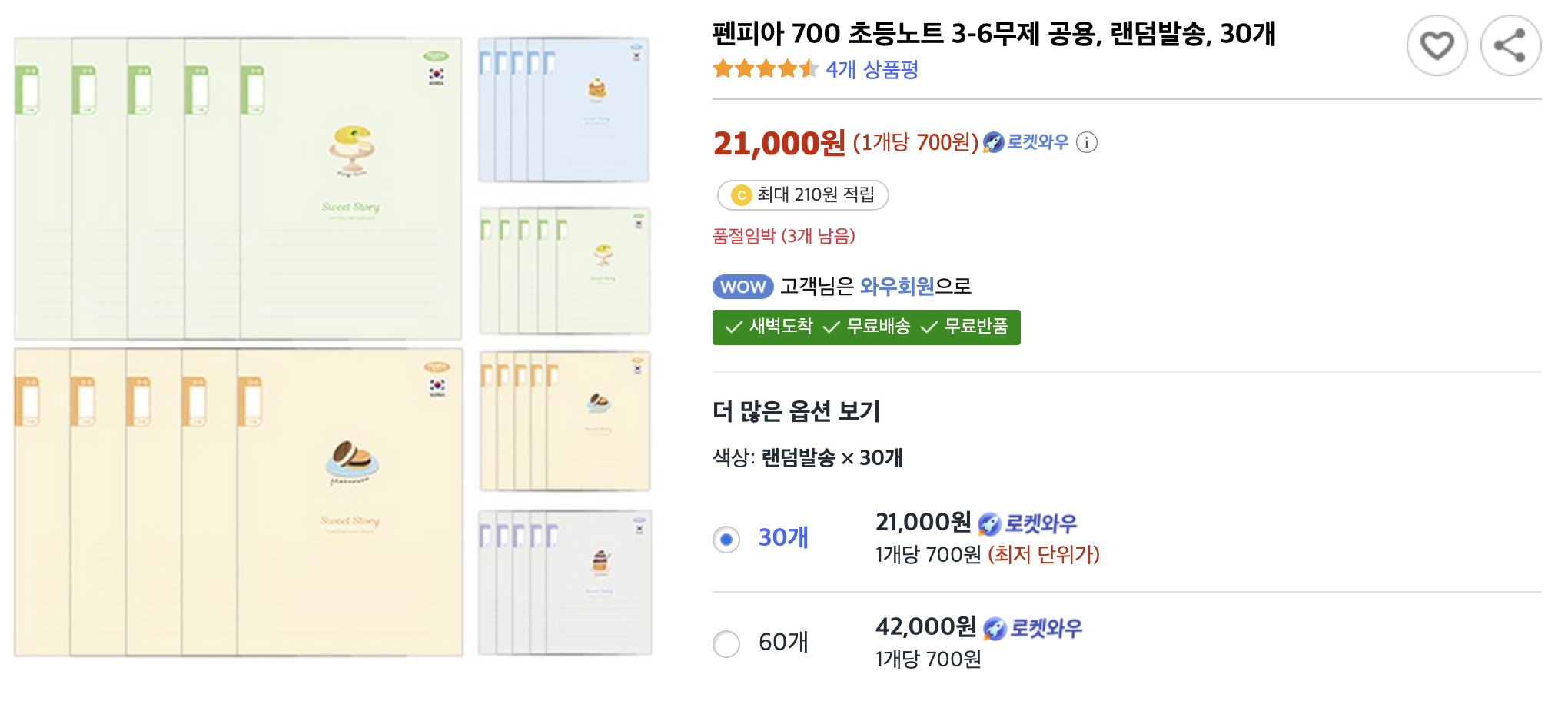 3학년 2권, 5학년 7권 준비물이었는데요. 개학시기에만 이 정도 필요하고 학기 중에 더 필요하게 되지 않을까 싶습니다. 남으면 내년에도 계속 쓰면 되겠습니다.