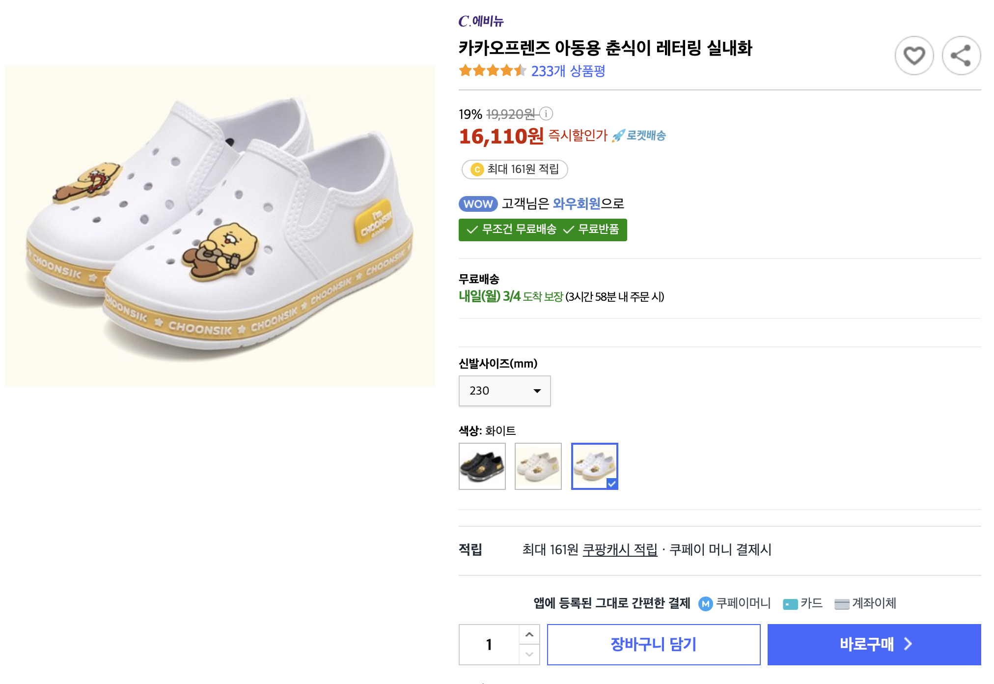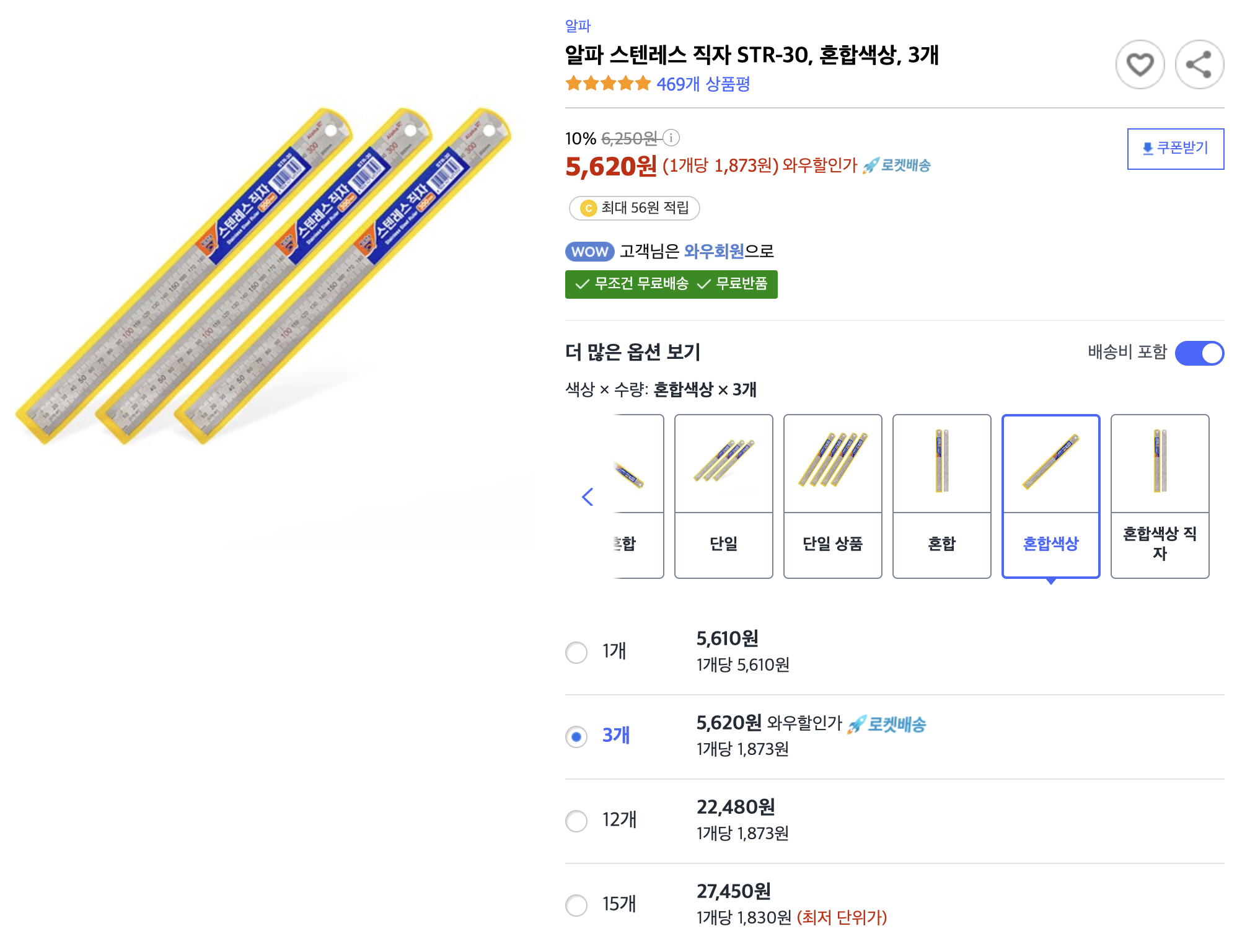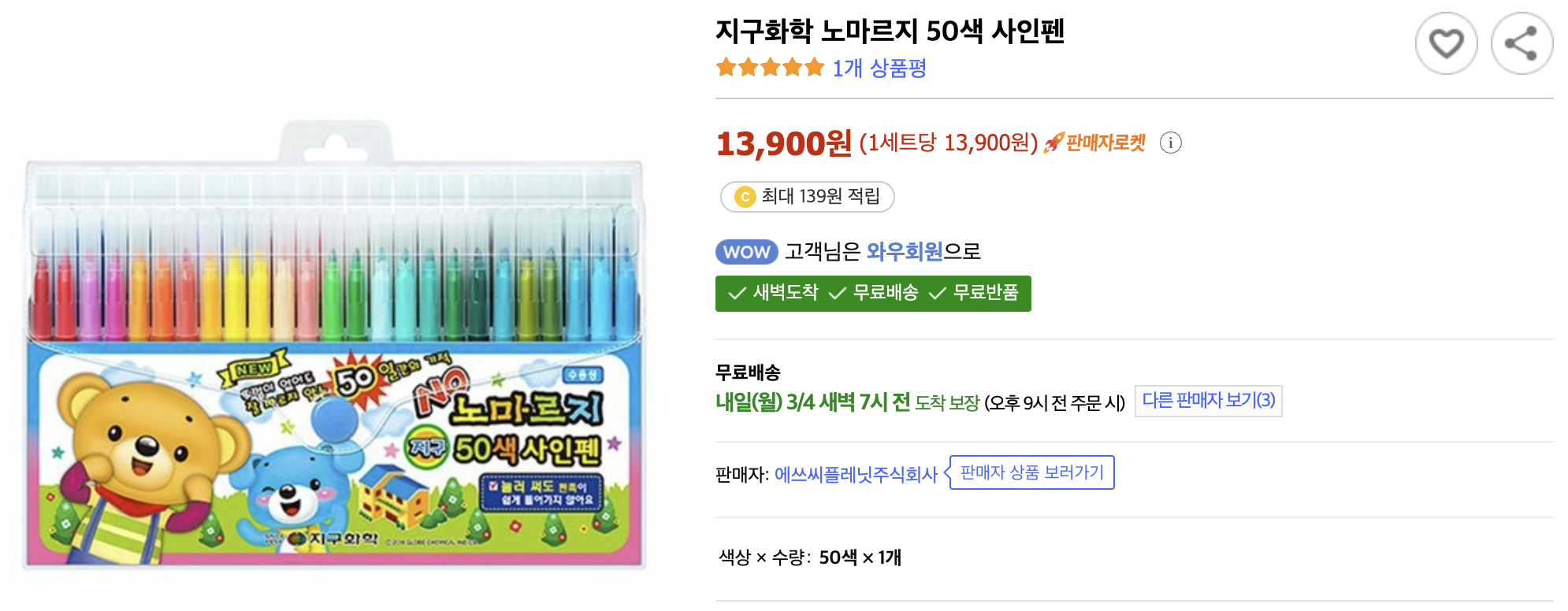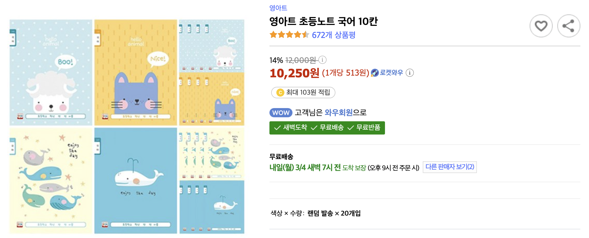 로켓배송이 되는 제품도 거의 없고, 되는 제품도 아이가 디자인을 마음에 들어 하지 않기도 해서 일반배송 제품을 주문했습니다.