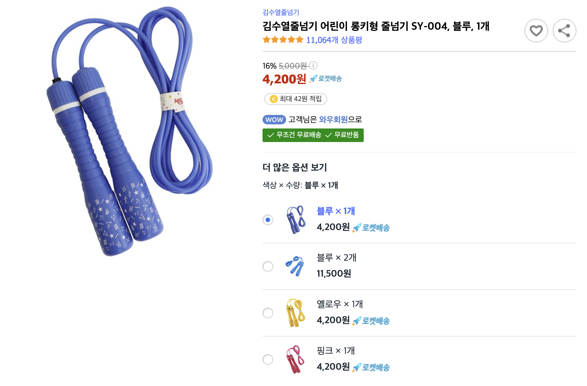 제품명: 김수열줄넘기 어린이 롱키형 SY-004 블루