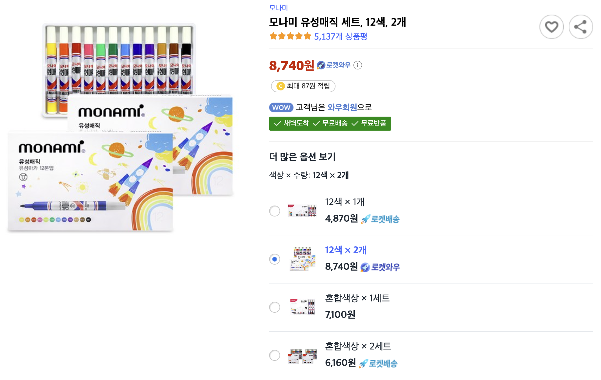 제품명: 모나미 유성매직 세트, 12색, 2개