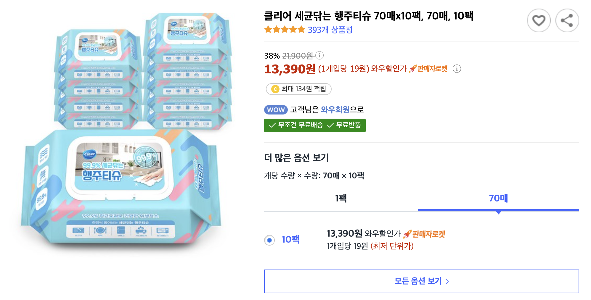 제품명: 클리어 세균닦는 행주티슈 70매x10팩