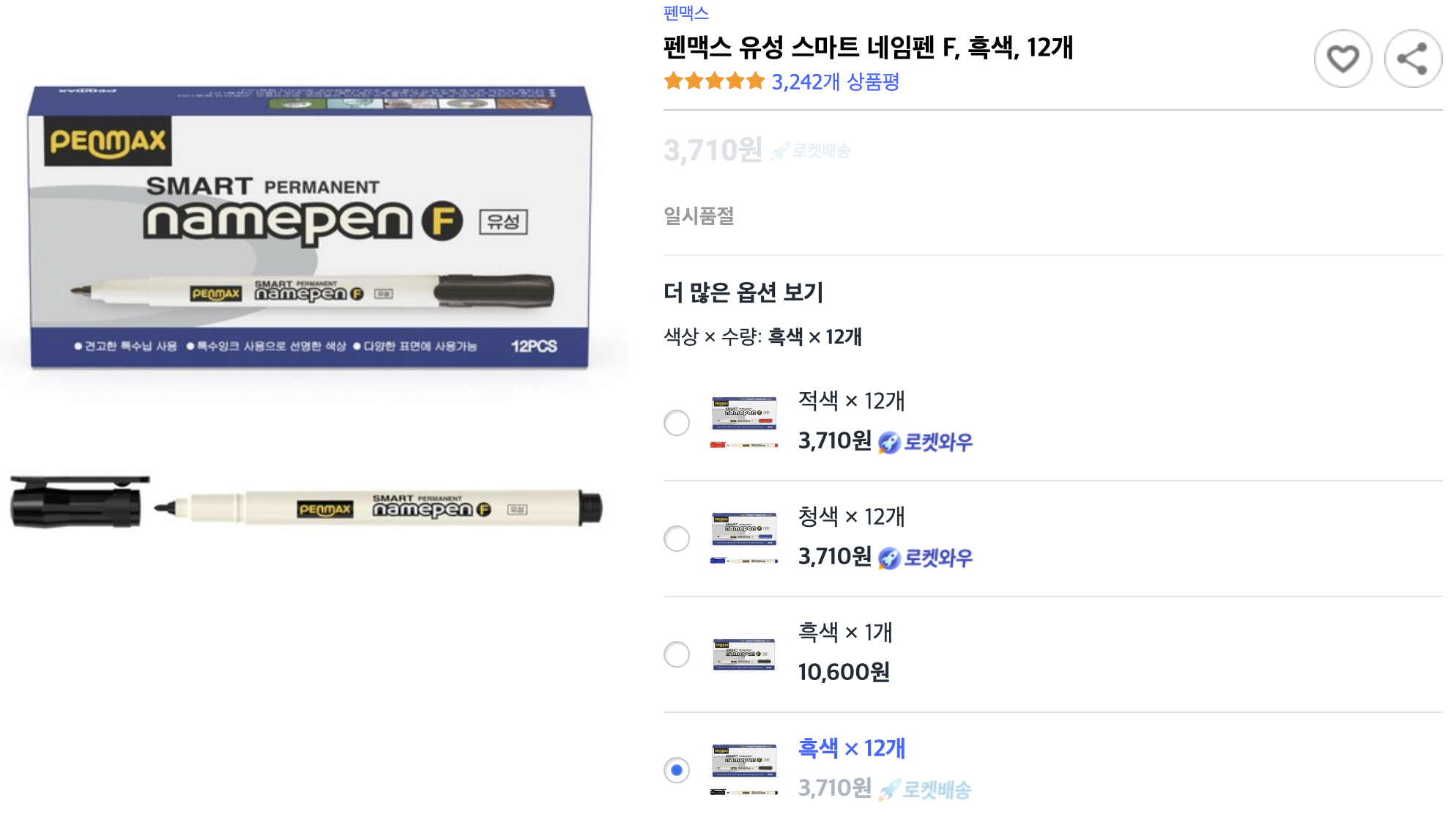 제품명: 펜맥스 유성 스마트 네임펜 F, 흑색, 12개