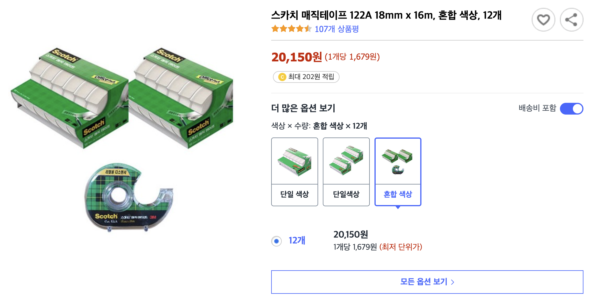 제품명: 스카치 매직테이프 122A 18mm x 16m 12개