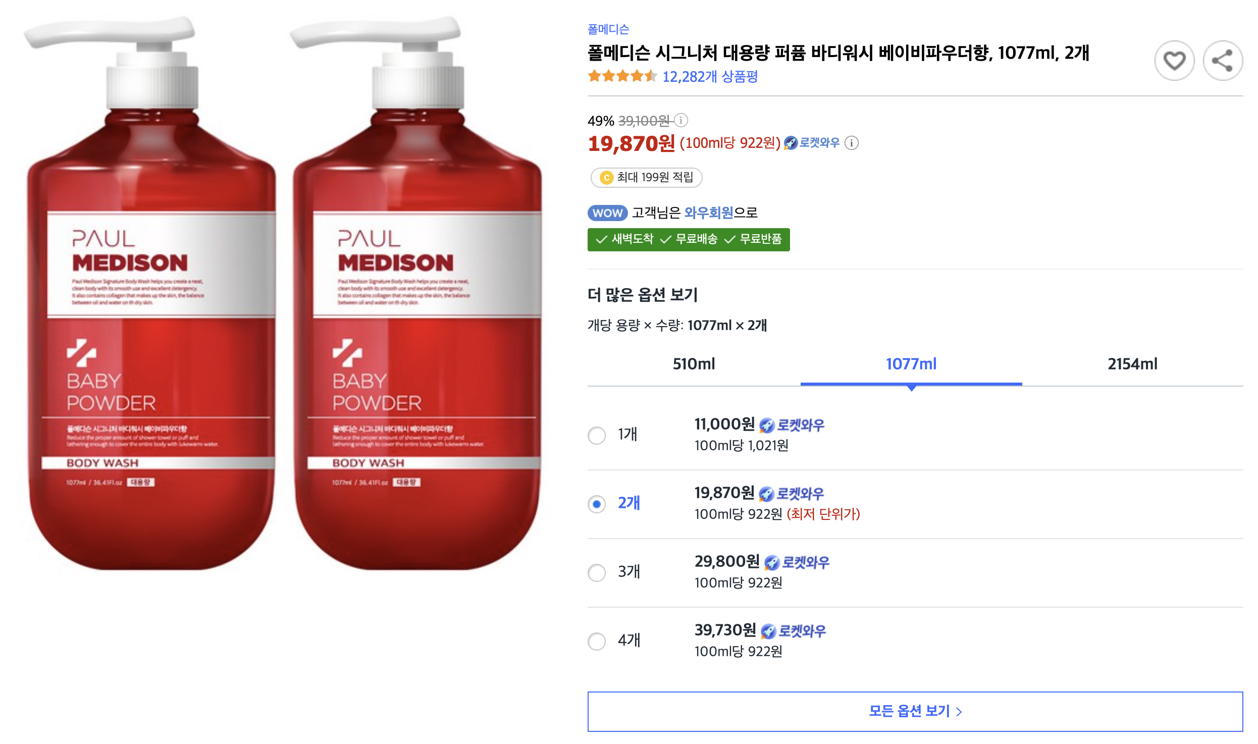 폴메디슨 시그니처 대용량 퍼퓸 바디워시 베이비파우더향, 1077ml, 2개