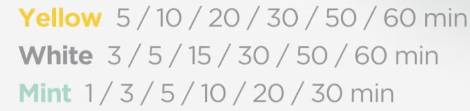 3가지 색상이 있고, 색상마다 기본 설정된 타이머 설정값이 조금씩 다릅니다.