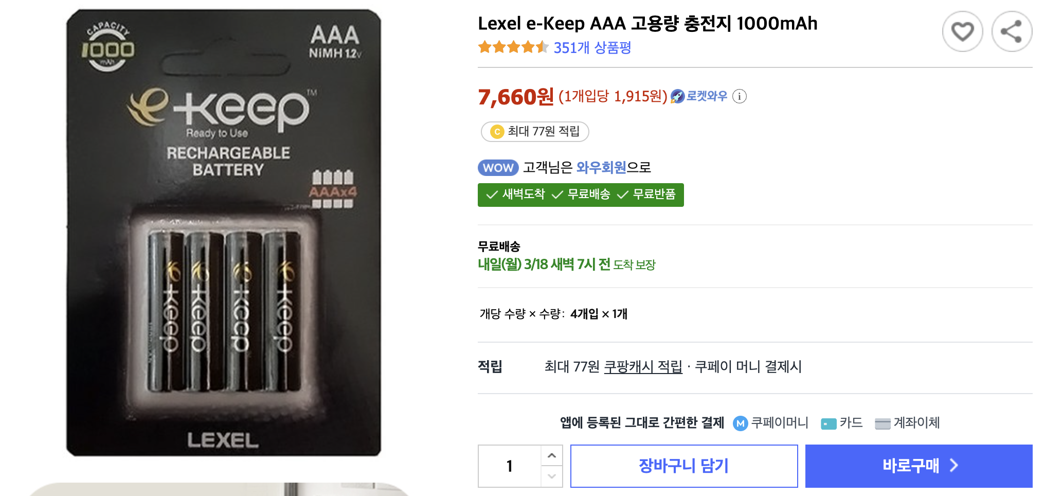 주문 - Lexel e-Keep AAA 고용량 충전지 1000mAh최저가를 찾아서 2024. 3. 17. 22:30반응형