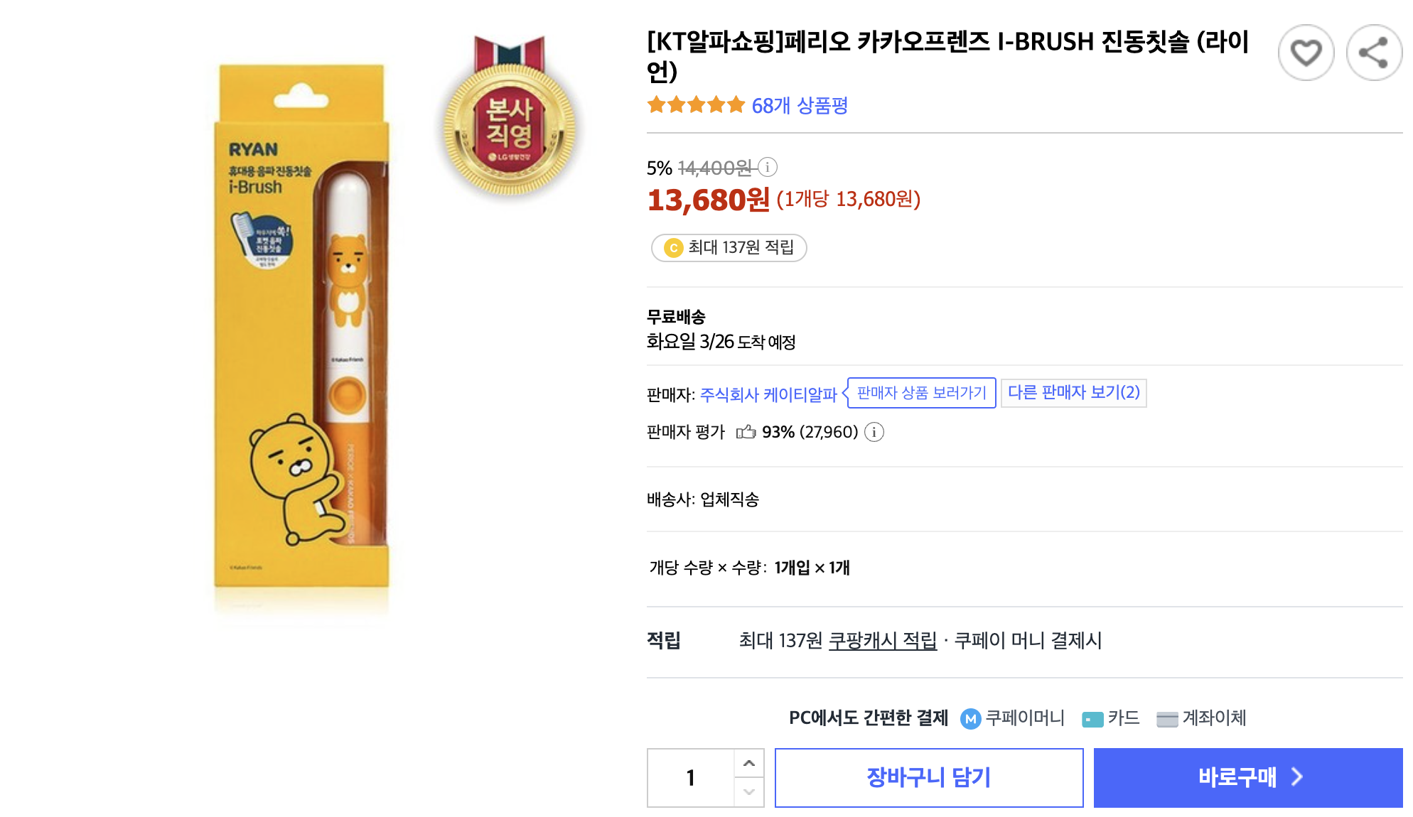 오래전 첫째 아이가 충치가 생기기도 한 겸 카카오프렌즈 전동칫솔을 사서 쓴 적이 있었습니다. 그런데 리필용 솔이 없어서 안 쓰고 본체만 방치하고 있었는데요. 둘째가 전동 칫솔을 사용해 보고 싶다고 해서 다시 구입하게 되었습니다. 그래서 구매 정보를 정리해 보았습니다.