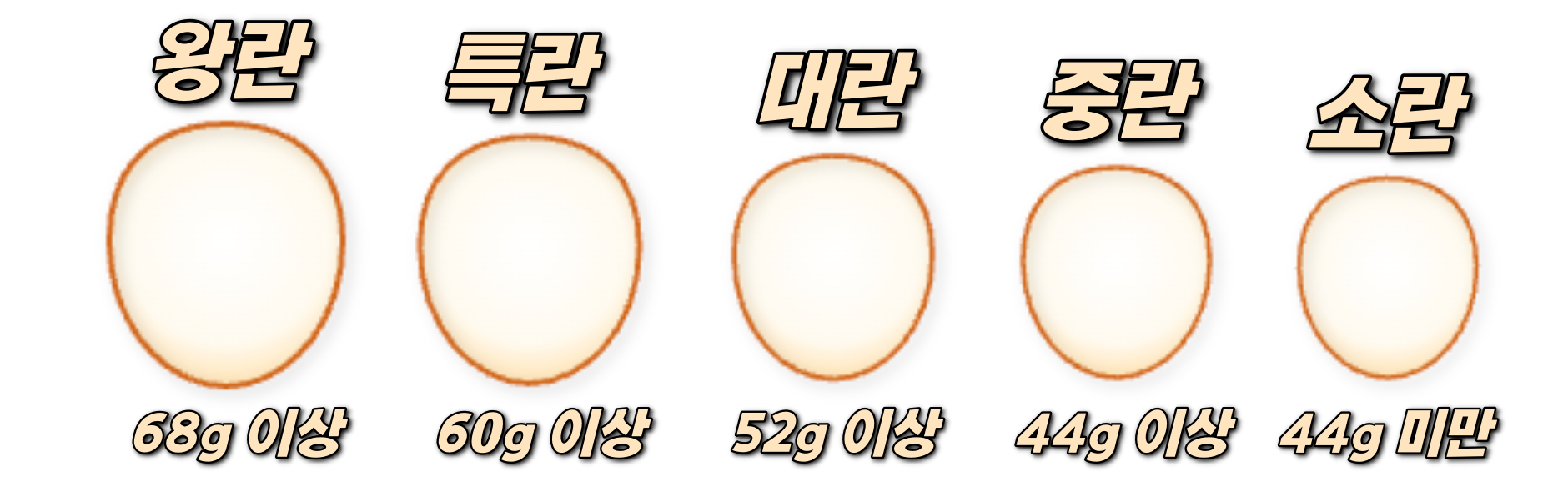 - 대란: 52g 이상 ~ 60g 미만