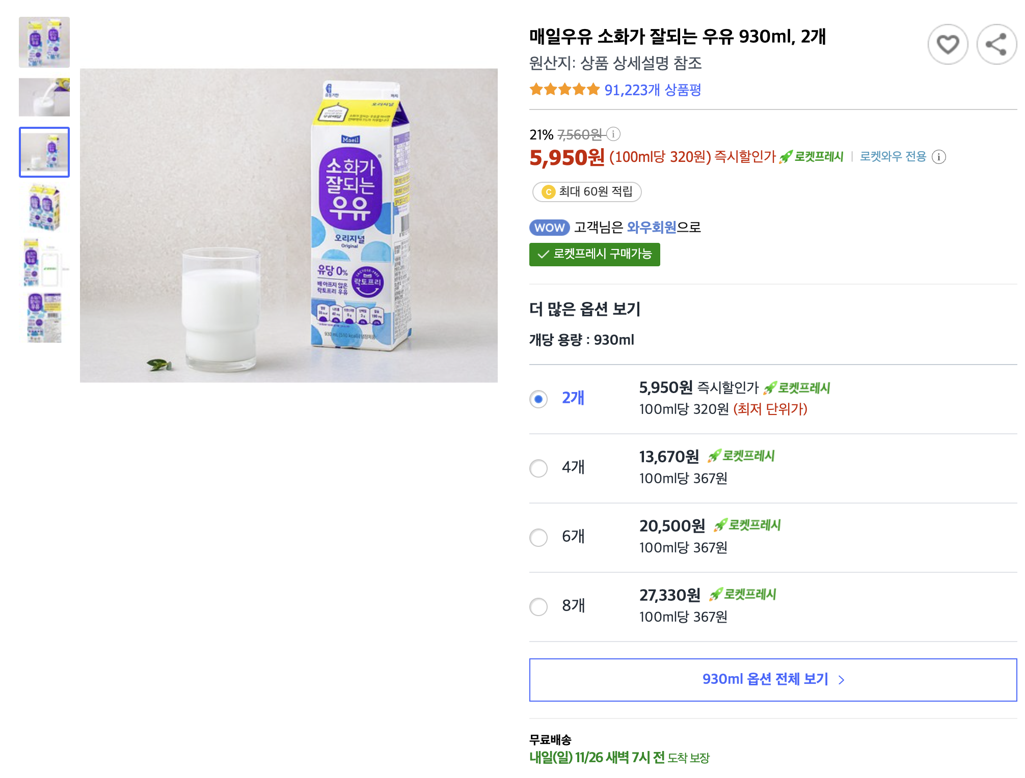 주문 - 매일우유 소화가 잘되는 우유 930ml