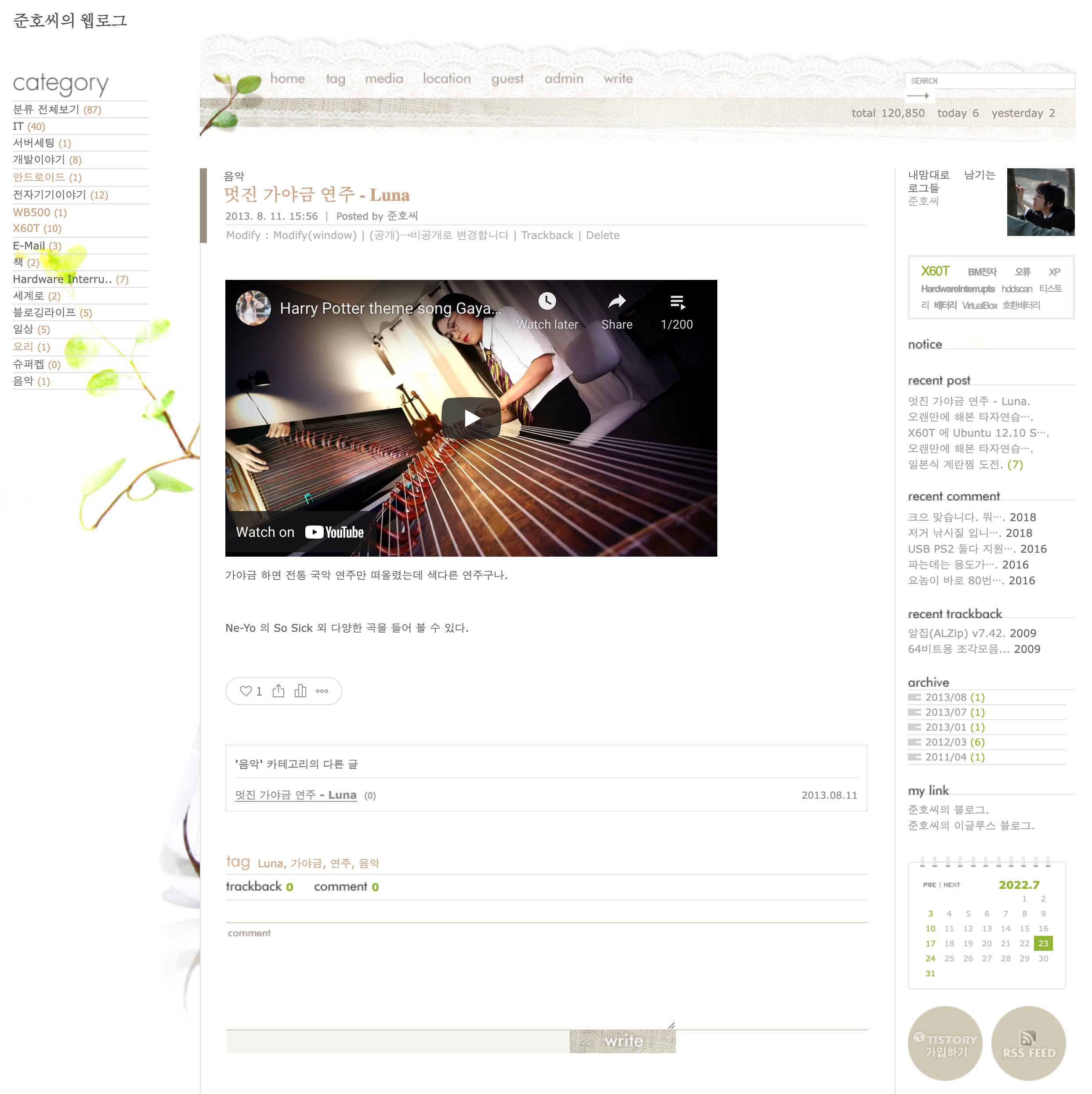 현재 블로그의 모습입니다. 메인 블로그가 아니다 보니 신경을 잘 안 쓰고 있었는데 거의 10년이 지나가 버렸습니다 ^^;
